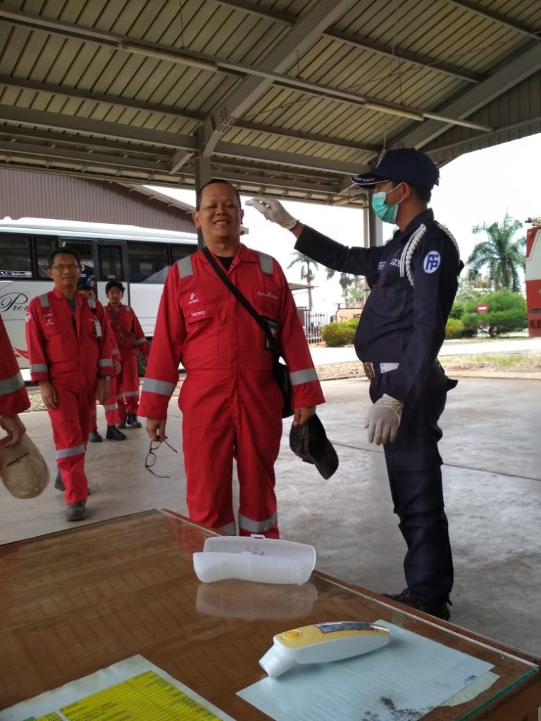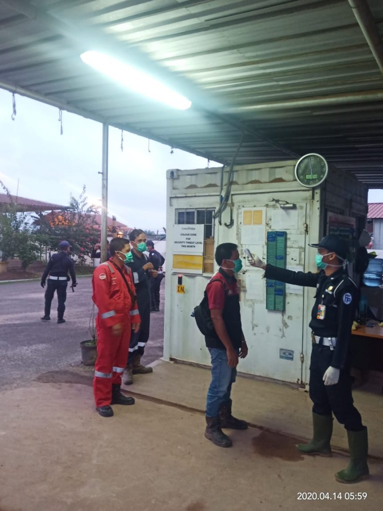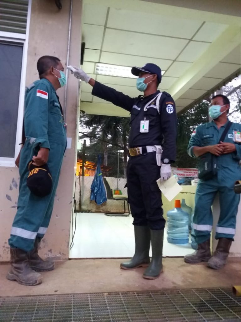 Mempersempit ruang gerak penyebaran Covid-19, dalam pelaksanaan standard protokol covid 19 screening dilakukan pemeriksaan suhu tubuh bagi semua pegawai yang akan memasuki lingkungan kerja/operasi. diharapkan dengan upaya ini dapat mempersempit ruang gerak penyebaran Covid-19 ke area operasi.